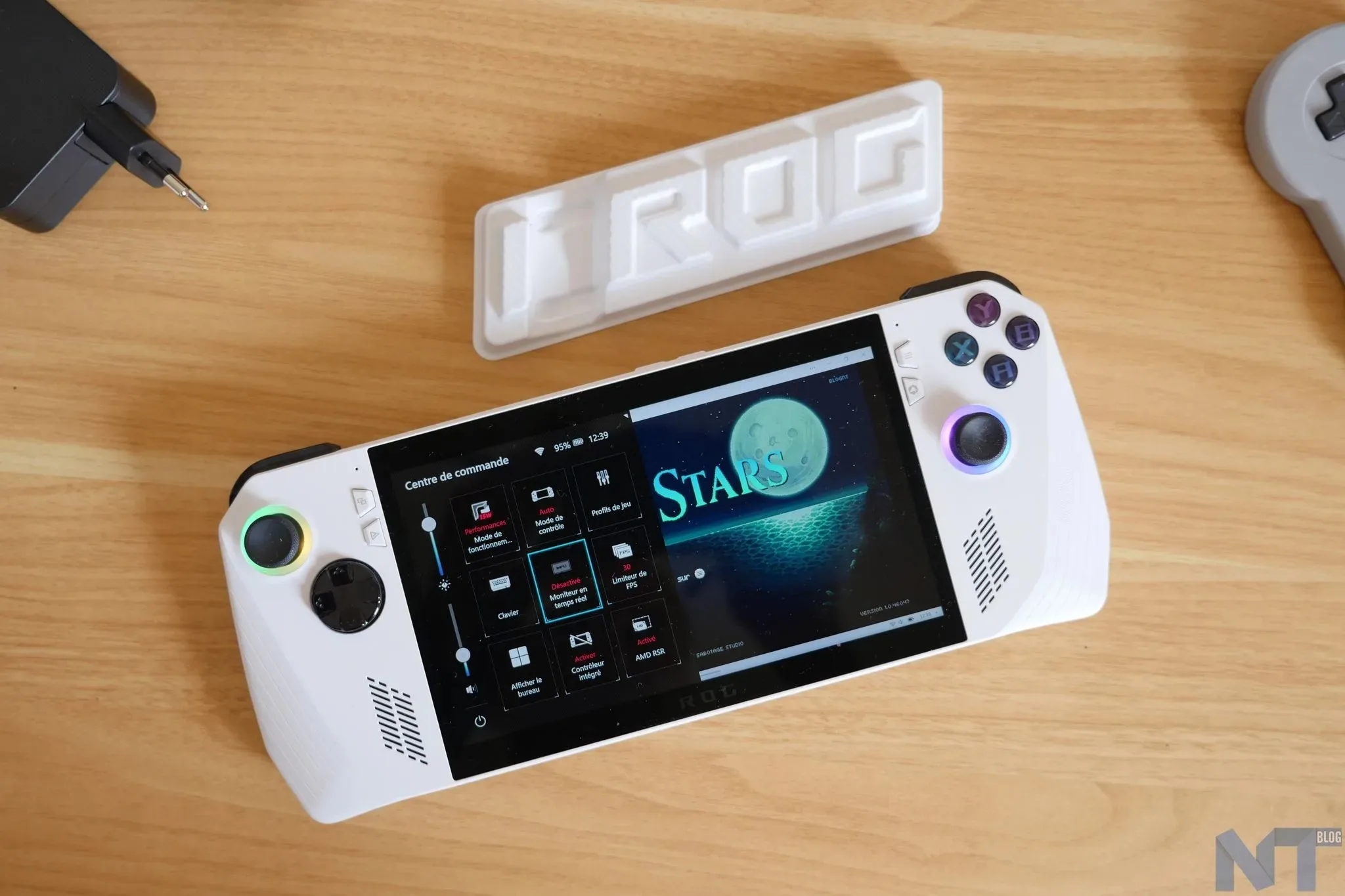 La ASUS ROG Ally est un PC de jeu portable doté d’un écran IPS LCD de 7 pouces d’une résolution de 1 920 x 1 080 pixels avec un taux de rafraîchissement de 120 Hz, de 16 Go de mémoire vive LPDDR5-6400, d’un SSD NVMe PCIe Gen 4 de 512 Go et d’un processeur AMD Ryzen Z1 doté d’une carte graphique RDNA 3.