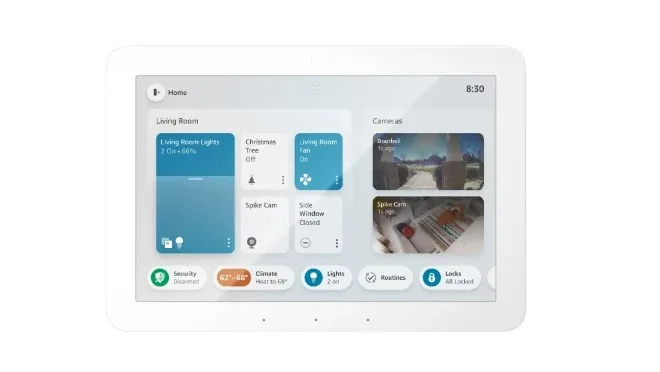 Disponible en précommande au prix de 199,99 euros, le Echo Hub est doté d’un écran tactile de 8 pouces qui vous donne accès à un tableau de bord de la maison connectée entièrement personnalisable. Lorsque l’on s’approche du Echo Hub, une fonction appelée Adaptive Content (contenu adaptatif) se met automatiquement en marche. Elle fait automatiquement passer l’écran principal d’une horloge à un tableau de bord des commandes et paramètres de la maison connectée. Lorsque vous utilisez le tableau de bord, vous pouvez tout faire, depuis l’armement de votre système de sécurité de la maison jusqu’au lancement d’une routine ou d’un widget. Vous pourrez également consulter les images de plusieurs caméras intérieures et extérieures.