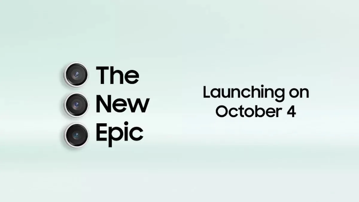 Samsung India a mis à jour l’en-tête de son compte X (anciennement connu sous le nom de Twitter) avec une image de teasing. Le teaser comprend une configuration de caméra qui est devenue associée à la configuration de caméra caractéristique des smartphones phares de Samsung, ainsi que le slogan « The new epic » (la nouvelle épopée). De plus, elle mentionne que le lancement aura lieu le 4 octobre.