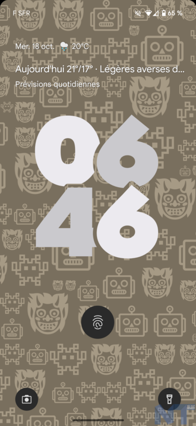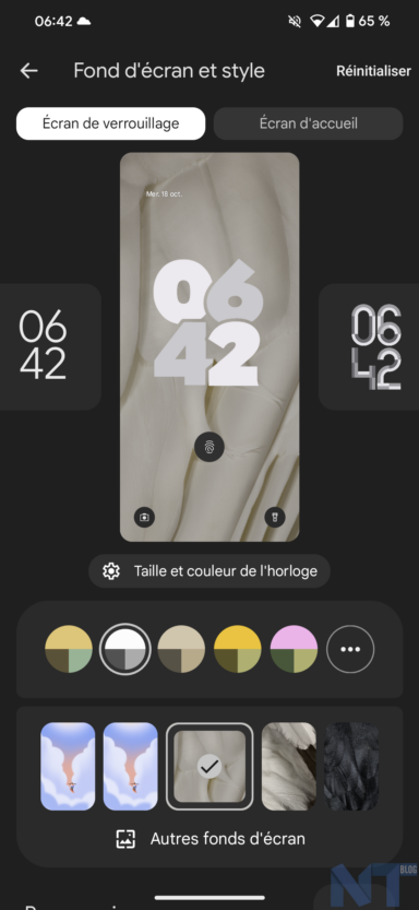- De retour à la page principale « Écran de verrouillage », vous avez la possibilité d’ajuster les couleurs de l’ensemble de l’écran de verrouillage (et pas seulement de l’horloge). Cela inclut les infos « En un coup d’œil » et les boutons de raccourci