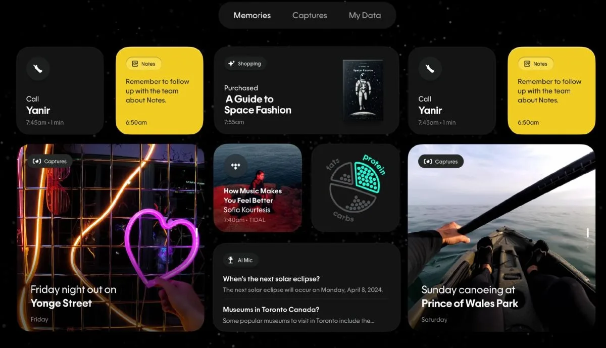 La caméra intégrée prend en charge la reconnaissance d’images. Dans une démonstration, par exemple, Humane a montré comment vous pouvez tenir une poignée d’amandes devant la caméra et demander la quantité de protéines qu’elle contient, ou tenir un livre pour demander combien il coûte.