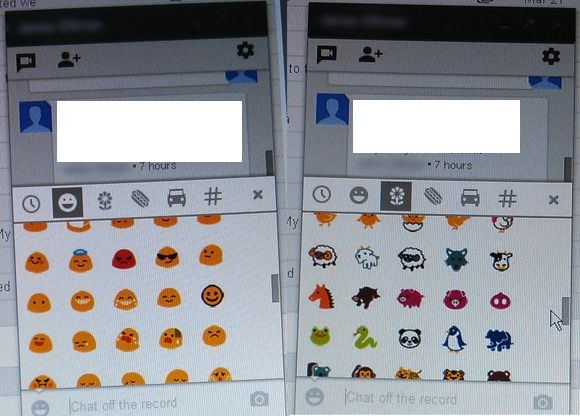 Le bouton Hangout est toujours en haut à gauche et les messages sont maintenant entourés d’un cadre blanc un peu à la manière de certaines présentations lorsque l’on s’échange des SMS. D’après ce que l’on peut voir, il y a également tout un tas de nouveaux émoticônes ainsi que la possibilité d’inclure des hashtags au sein de vos propres conversations.