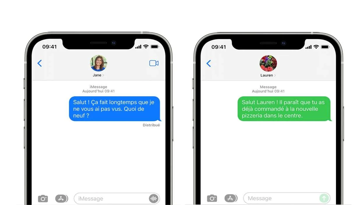 Les iPhone disposent de deux méthodes de messagerie texte : iMessage et SMS. Les chats iMessage sont en bleu, tandis que tous les autres sont en vert. Jusqu’en 2024, ces messages verts ne pouvaient être que des SMS.