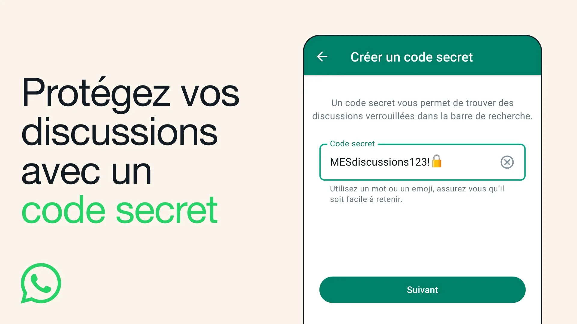 La fonctionnalité « Code secret » commence à être déployée aujourd’hui et sera disponible dans le monde entier dans les mois à venir. WhatsApp reste engagé à améliorer les fonctionnalités de « Code secret » pour permettre aux utilisateurs de protéger leur vie privée.