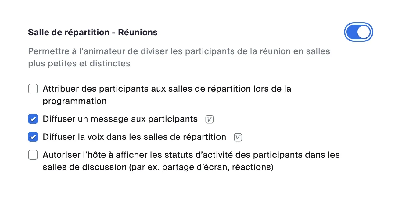 Zoom permet de préaffecter les participants aux salles avant même le début de la réunion. Pensez aux regroupements par département ou à la création de salles en fonction des résultats d’un sondage. Imaginez la transition transparente entre l’installation et l’interaction.
