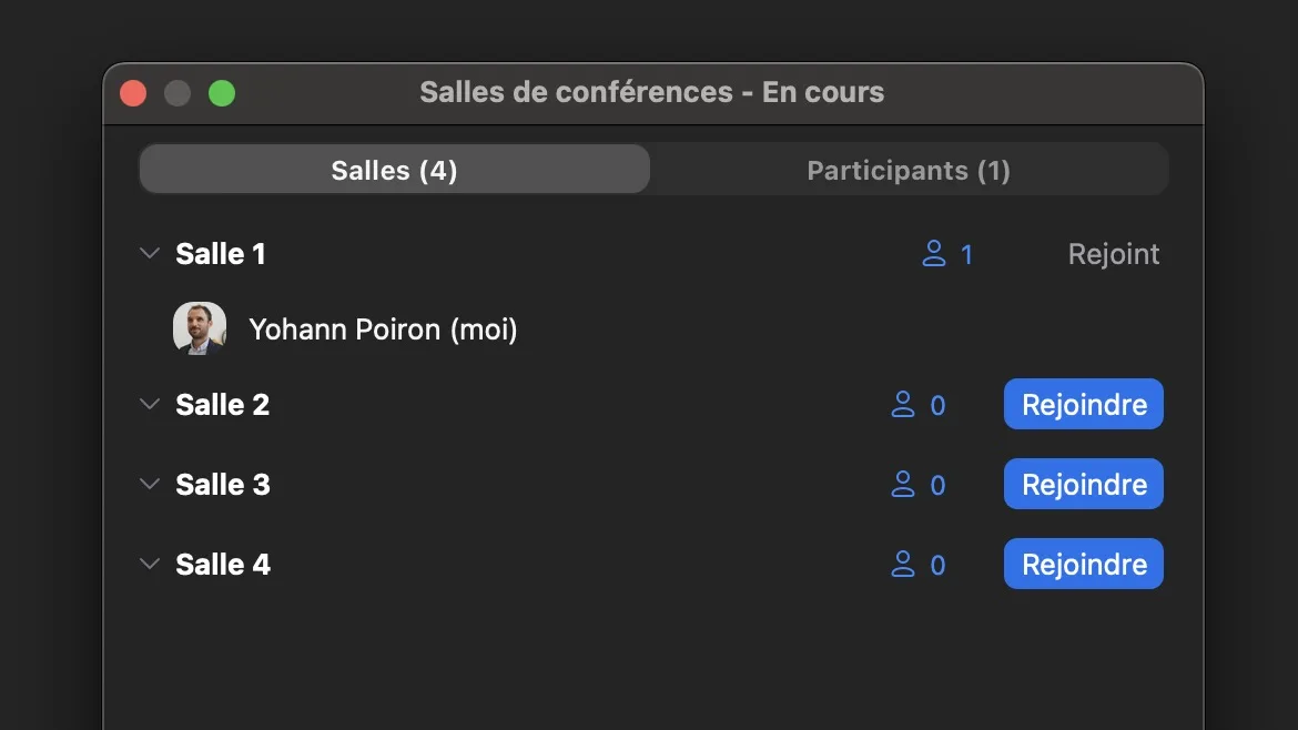 - Cliquez sur « Rejoindre » dans la salle souhaitée.