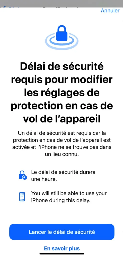 Ensuite, la fonctionnalité permet également de retarder la modification des identifiants Apple ID en fonction de l’emplacement. Ainsi, si quelqu’un souhaite modifier le mot de passe de votre identifiant Apple, il devra attendre. Dans cet intervalle, la victime peut choisir de localiser son appareil à l’aide du réseau Localiser, d’effacer à distance son contenu iCloud et de déposer une plainte pour vol.