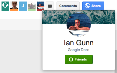 En effet, si vous êtes connecté à votre compte lors de la visualisation d’un fichier, d’autres utilisateurs seront en mesure de voir vos coordonnées quand ils survoleront au-dessus de votre photo et seront en mesure de vous ajouter instantanément à leurs cercles Google+ au sein de Drive.