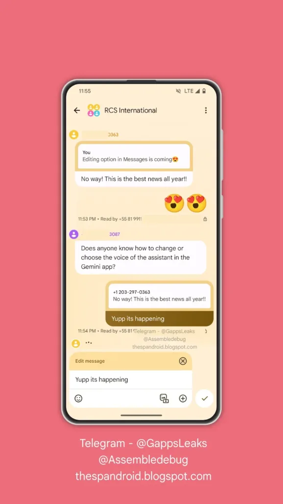 Actuellement, si vous tentez d’activer cette fonctionnalité, le destinataire ne verra pas les modifications correctement s’il n’a pas également activé cette option. Pour ceux n’ayant pas activé la fonctionnalité, les modifications semblent être reçues comme des messages séparés. Selon AssembleDebug, cette fonctionnalité pourrait être activée pour la version bêta de Google Messages d’ici la fin de ce mois ou le mois prochain. Les utilisateurs Android réclament cette fonctionnalité depuis longtemps, et elle leur sera bientôt accessible.