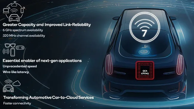 - Introduction du Wi-Fi 7 pour les automobiles : Qualcomm lance la solution Qualcomm QCA6797AQ, le premier point d’accès Wi-Fi 7 de grade automobile, conçu pour répondre aux demandes avancées en véhicule avec des caractéristiques telles que la bande haute simultanée (HBS), Multi-link Multi-Radio (MLMR), une largeur de bande de 320 MHz, et 4K QAM.