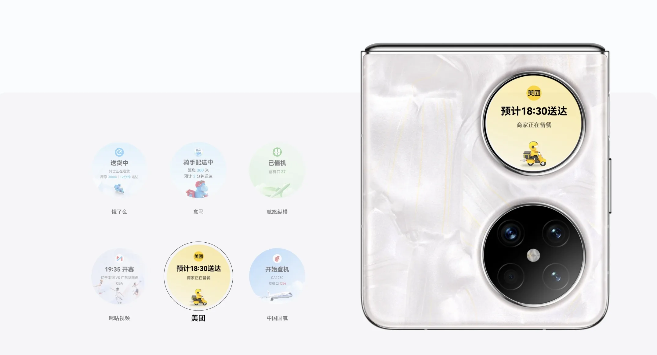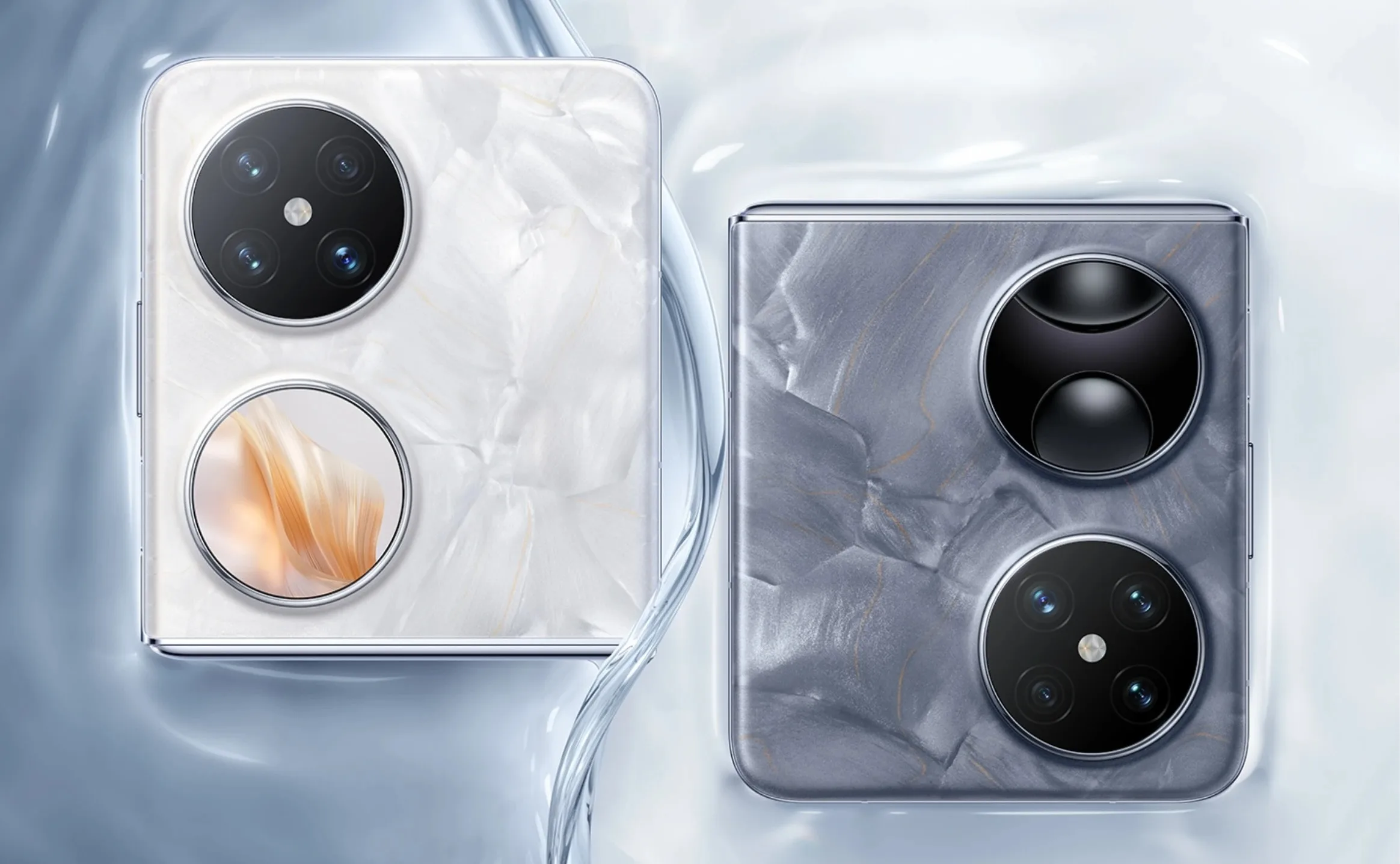 Comme pour tout appareil pliable, on peut se demander à quoi ressemble la charnière. L’un des points forts de ce smartphone est sa charnière en forme de goutte d’eau, permettant un pliage sans espace et réduisant la visibilité du pli de l’écran. Selon Huawei, cette conception assure une surface toujours lisse et plane, même après une utilisation prolongée. Le petit écran de couverture de 1,15 pouce, situé à côté des caméras, arbore un design symétrique en double cercle et est disponible en quatre coloris : Tahitian Grey, Rococo White, Taro Purple, et Elegant Black.