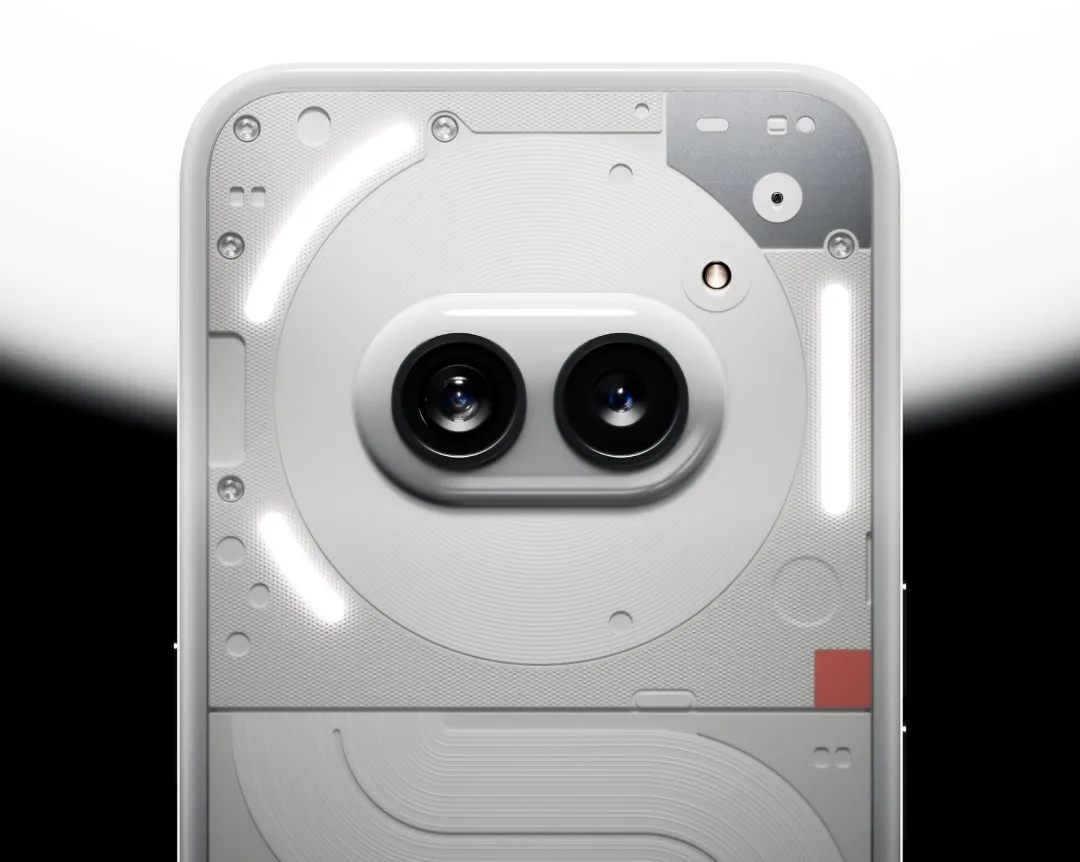Le smartphone arbore également un module caméra unique, centré dans la partie supérieure, avec des objectifs regroupés de manière à évoquer des yeux. Cela explique le slogan « Fresh Eyes » utilisé par Nothing dans ses teasers jusqu’à présent.