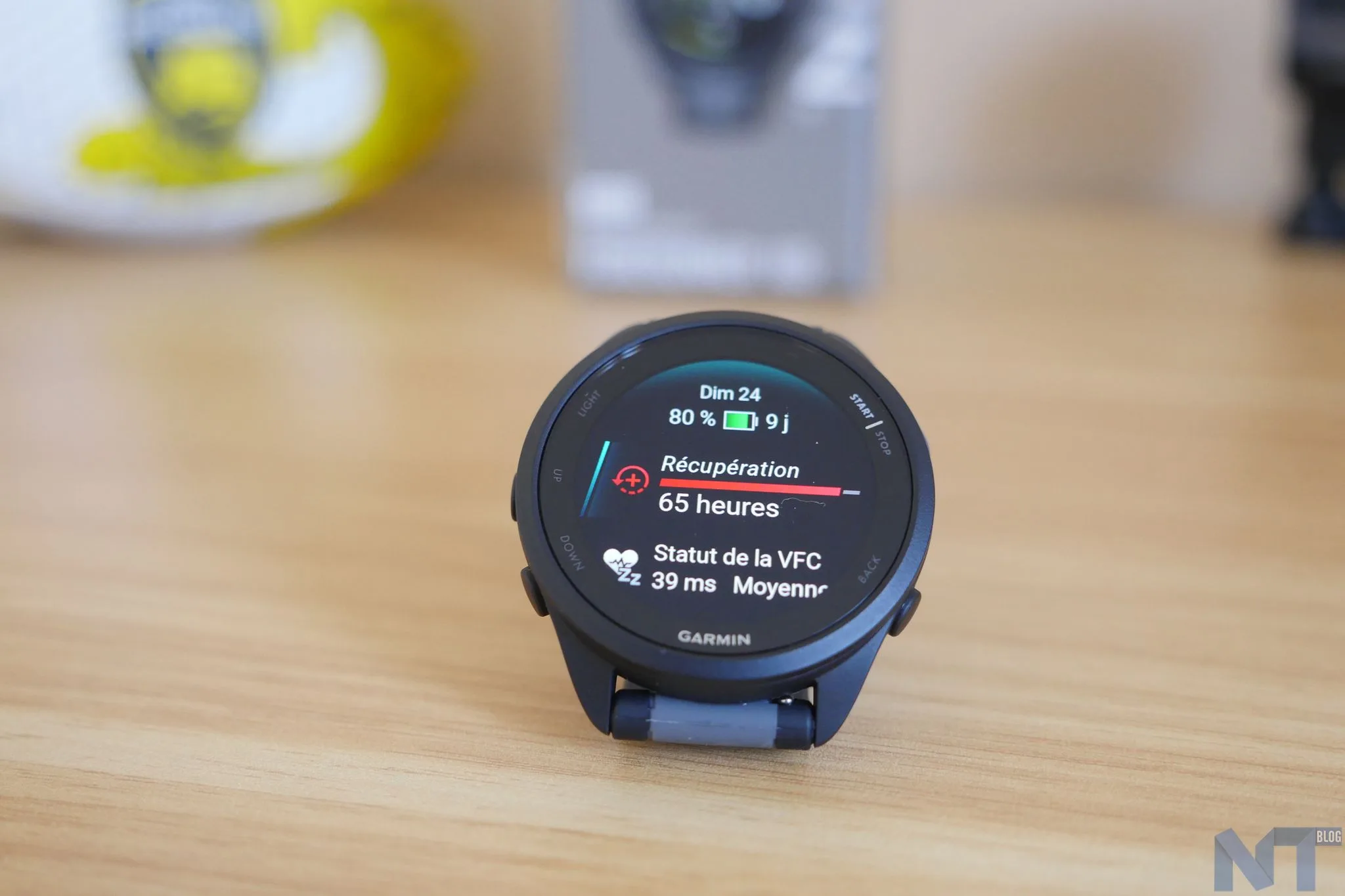 Après un entraînement, Garmin vous montre également votre Temps de Récupération. Encore une fois, super utile. Rappelez-vous juste que le nombre que vous voyez indique combien de temps vous devriez attendre avant votre prochain entraînement intensif.