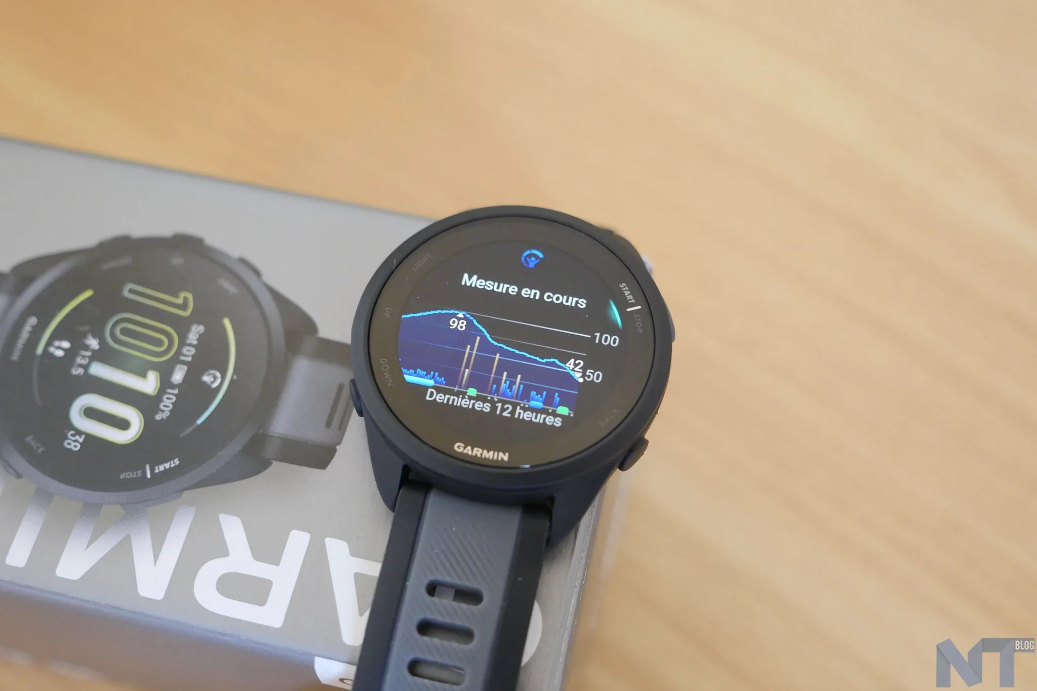 Cependant, un avantage de cette montre moins chère par rapport aux modèles plus onéreux est qu’elle est équipée d’un écran plat. C’est plus pratique que l’écran bombé de la Forerunner 265 car il est moins exposé aux rayures et vous pouvez facilement appliquer un protecteur d’écran si vous le souhaitez.