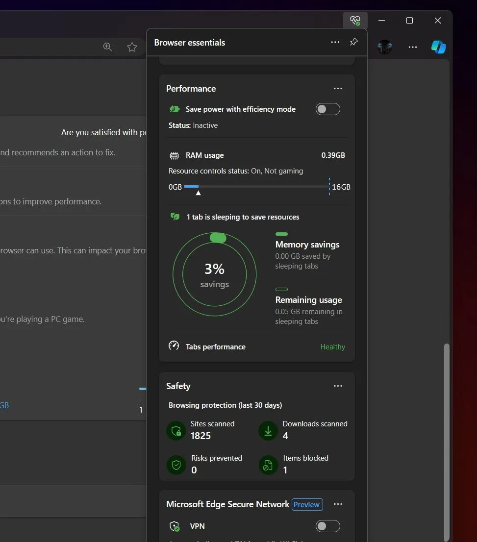 A new section on the Settings page could let you control how much RAM Edge can use, you can also choose whether this control is activated only when you are playing a game or always:https://t.co/YiCu5igL0U pic.twitter.com/pE29PI6FfR