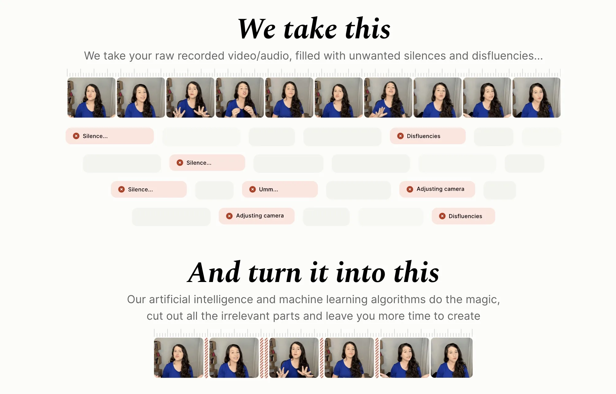 Enfin, Gling.ai propose une approche unique de l’édition vidéo. Il transcrit vos vidéos en texte, ce qui vous permet d’effectuer des modifications comme si vous travailliez sur un document écrit. Cette méthode innovante offre une précision incroyable, car les modifications apportées au texte se répercutent directement sur la vidéo. Gling.ai vous aide également à identifier les meilleures prises et peut être utilisé parallèlement aux outils d’édition traditionnels pour une mise au point encore plus détaillée.