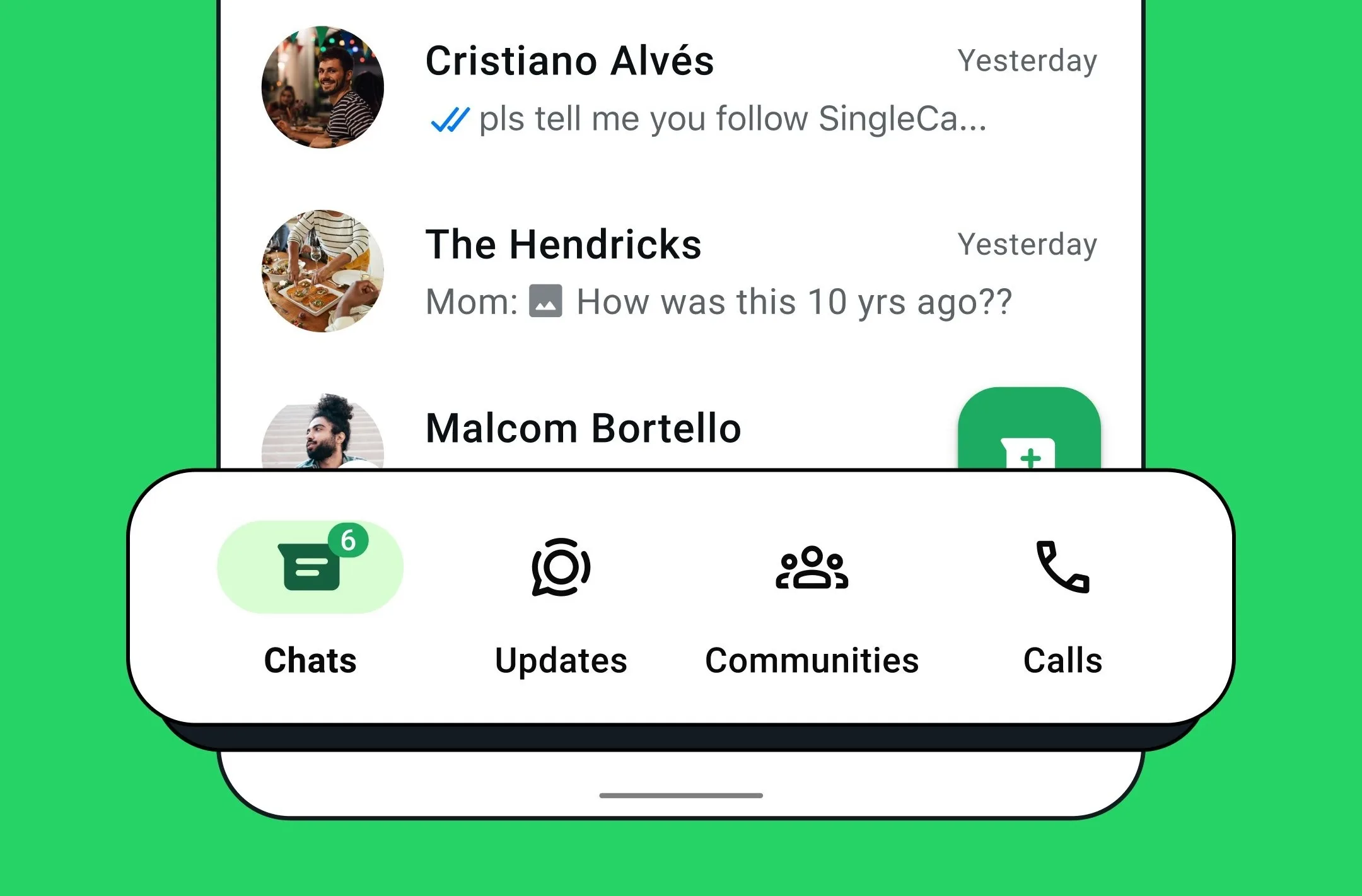 La dernière mise à jour de WhatsApp est diffusée par vagues, il faudra donc attendre encore quelques jours pour que tout le monde voie la nouvelle barre de navigation dans l’application.