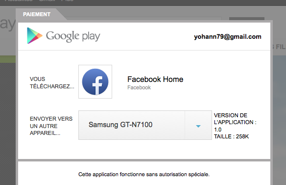 Alors qu’il n’y aucune mention de ce changement dans la description de l’application sur Google Play, on peut s’apercevoir dès lors que l’on dispose d’un Galaxy S4 ou d’un HTC One, qu’il n’y a plus le message mentionnant que l’application n’est pas compatible avec les dispositifs. En effet, il sera désormais possible de cliquer et demander l’installation de l’application Facebook Home sur votre dispositif.
