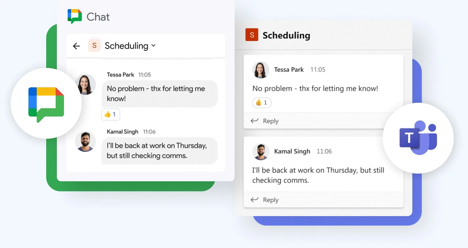 L’année dernière, lors de l’événement Cloud Next, Google a révélé ses plans pour permettre l’interopérabilité entre son application Chat et des plateformes concurrentes comme Microsoft Teams et Slack. Cette fonctionnalité, développée en collaboration avec Mio, est rapidement entrée en phase de test bêta et a été mise à disposition des clients de Google Workspace via un programme spécial d’inscription.