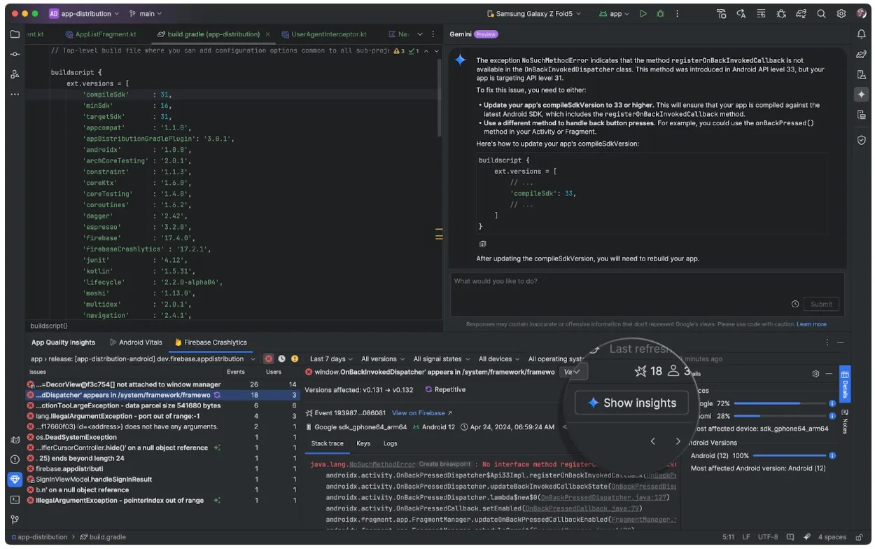 En outre, Gemini offre maintenant des analyses détaillées des rapports de plantage grâce à l’outil App Quality Insights dans Android Studio, permettant aux développeurs de comprendre et de corriger plus efficacement les problèmes.