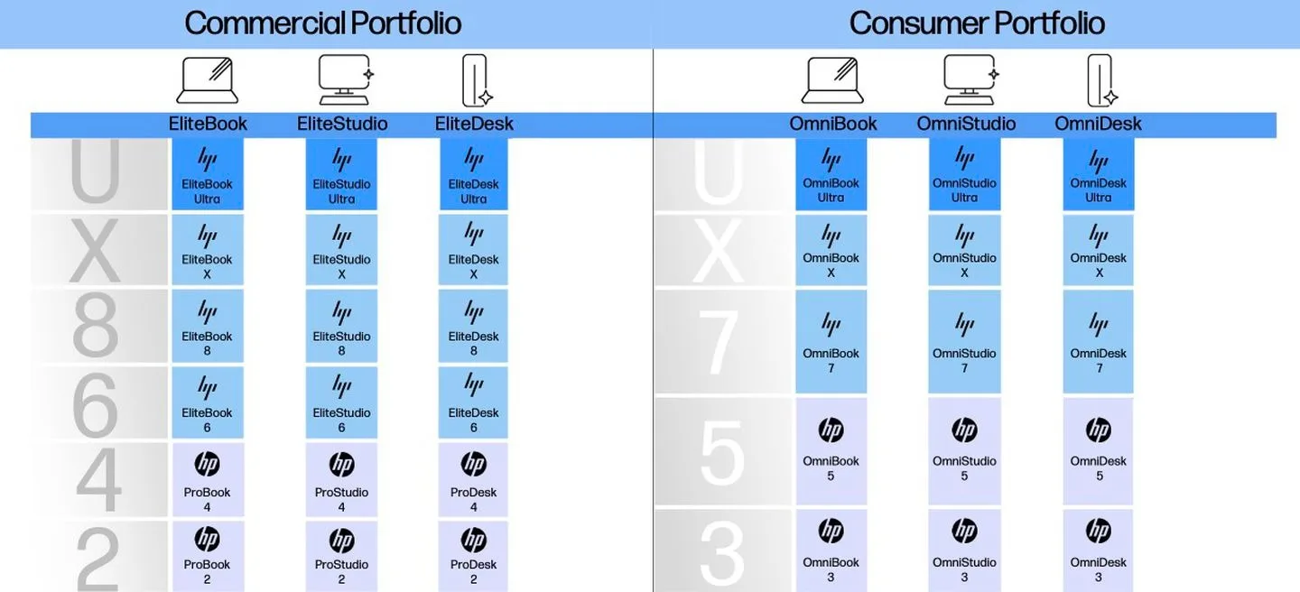 Exit les Envys, Pavilions et Dragonflies. À leur place, on retrouve les OmniBook, destinés aux consommateurs, et les EliteBook et ProBook, orientés vers les professionnels. L’objectif est de simplifier l’offre pour ceux qui veulent simplement acheter un ordinateur portable.