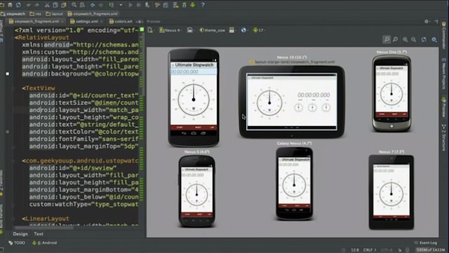 Comme on nous l’avait promis pour cette Google I/O, cette conférence est vraiment dédiée aux développeurs ! Android Studio est le dernier environnement de développement de l’entreprise pour Android et apporte beaucoup de changements qui devraient profiter tant aux développeurs qu’aux utilisateurs. Android Studio, basé sur IntelliJ, fonctionne tel un éditeur WYSIWYG pour la création d’applications. Vous pouvez apporter des modifications telles que la disposition et la langue, tout en voyant le changement dans la vue de prévisualisation en temps réel sur la droite, et ce pendant que vous peaufiner les réglages. Google espère que cela aidera les développeurs à créer des applications plus belles avec un minimum d’effort.