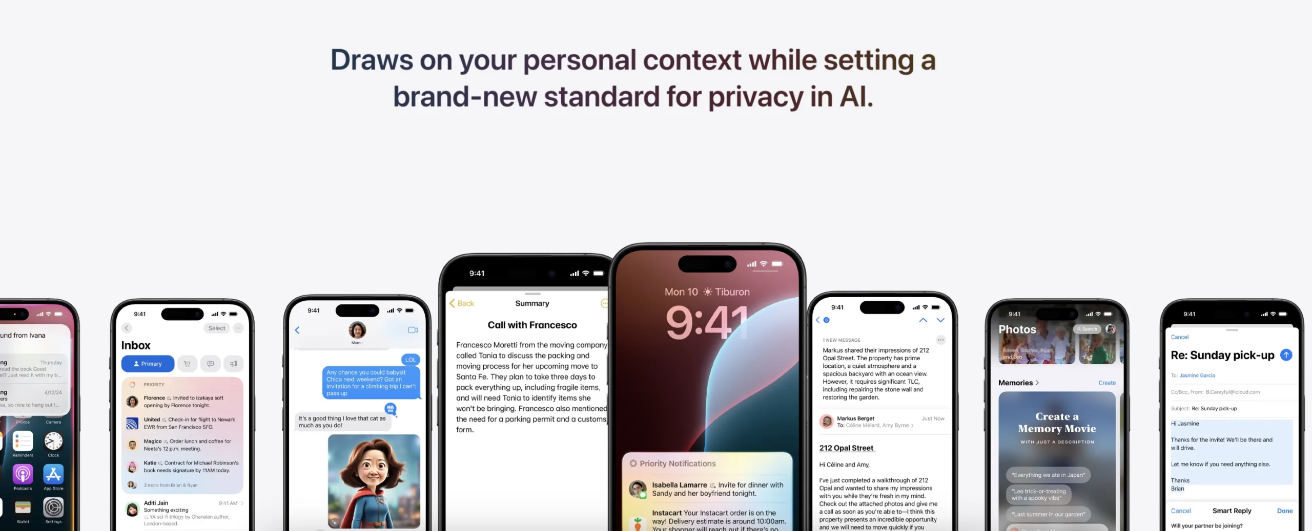 - Personnalisation : En analysant soigneusement vos données et vos habitudes d’utilisation des apps, Apple Intelligence personnalise votre expérience, en vous offrant une interface plus intuitive et personnalisée qui s’adapte à vos besoins et préférences uniques.