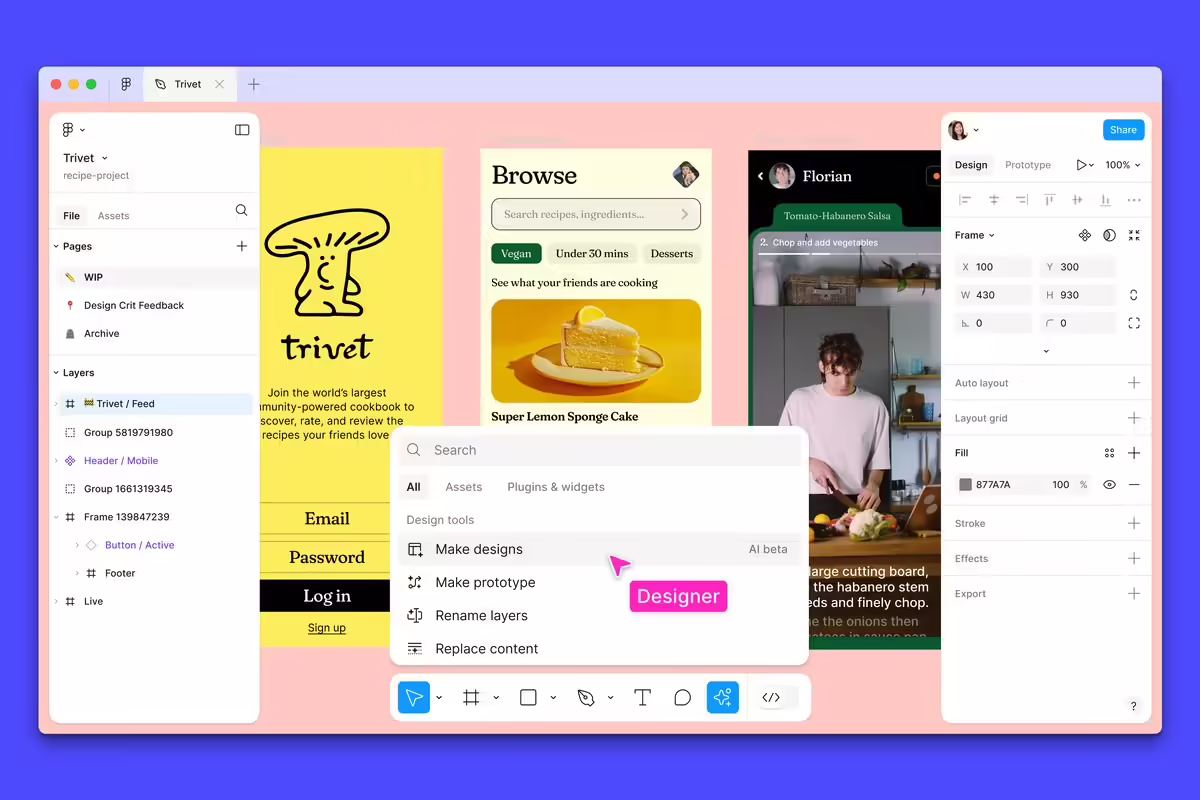 Figma AI ambitionne d’offrir des capacités similaires, mais spécifiquement pour les designers de produits. Voici ce que propose Figma AI :