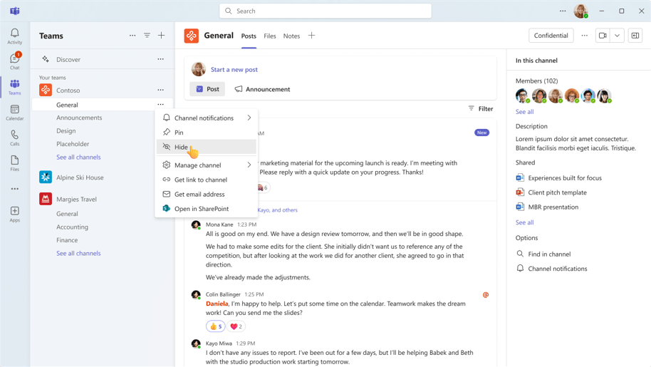 L’une des mises à jour les plus importantes est la possibilité de masquer des canaux spécifiques dans Microsoft Teams. Cette fonctionnalité vous permet de donner la priorité aux discussions les plus pertinentes et de réduire l’encombrement de votre espace de travail. En masquant les canaux qui ne sont pas essentiels à vos tâches actuelles, vous pouvez créer un environnement plus ciblé qui favorise la productivité.
