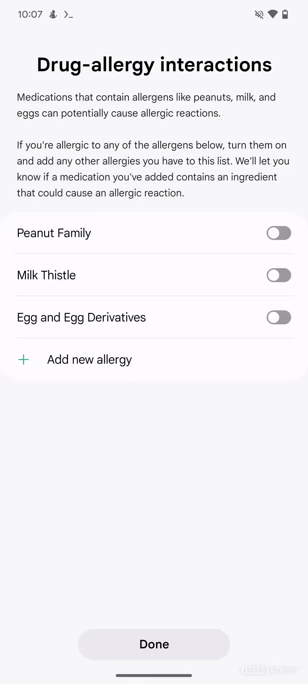 La deuxième fonctionnalité en cours de développement concerne les interactions médicamenteuses et les allergies. Les utilisateurs pourront sélectionner des allergies courantes ou ajouter les leurs, et Samsung Health les informera si un médicament peut provoquer une réaction allergique.