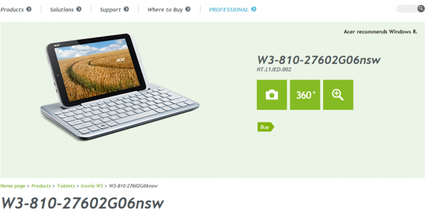 L’Iconia W3 est présenté comme un dispositif qui va rendre la tablette hautement portable mais pouvant également servir de plateforme de bureau, grâce à son écran pratique de 8 pouces et à son dock clavier optionnel. La tablette a été dévoilée sur le site finlandais de l’entreprise, mais pas sur ses filiales à l’heure où j’écris ces lignes.