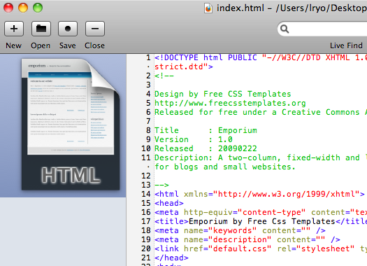 index.html), un dossier d’images et un fichier CSS (default.css). Gardez la structure de ce dossier intact et ouvrez le fichierindex.htmldans un éditeur HTML, ou même un bloc-notes - 4 – Modifiez le contenu de la page, et ouvrez là avec votre navigateur pour en visualiser le résultat. Vous pouvez dupliquer le fichier