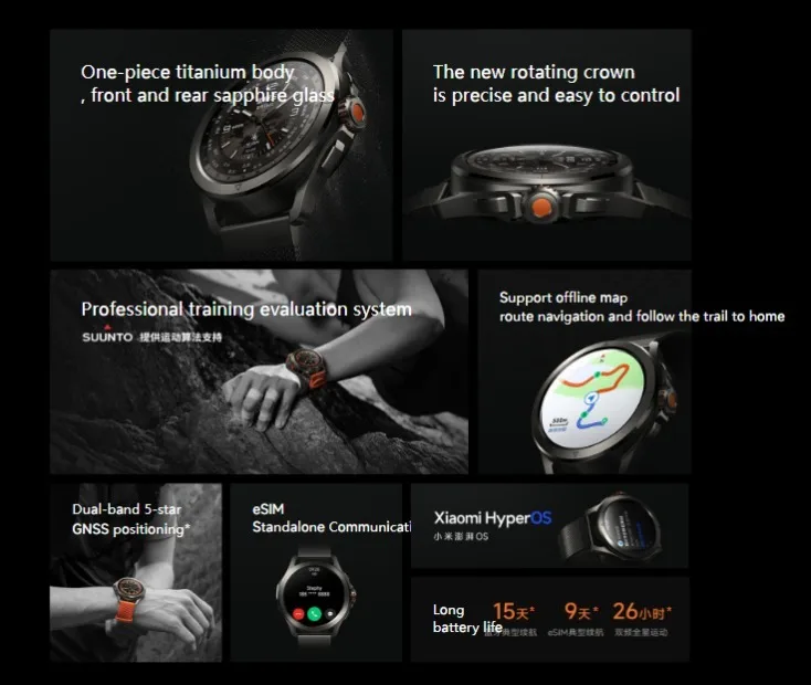 Fonctionnant sous HyperOS de Xiaomi, elle promet jusqu’à 15 jours d’autonomie. En collaboration avec SUUNTO, un spécialiste mondial des sports de plein air, Xiaomi offre un système d’évaluation de l’entraînement professionnel, adapté aussi bien pour les évaluations ponctuelles que pour les suivis à long terme. La montre est conçue pour des activités intenses comme l’escalade et l’alpinisme.