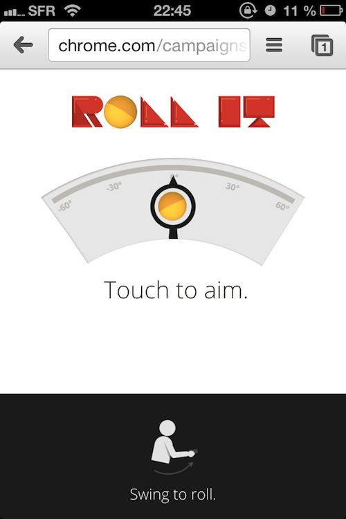 Pour jouer, il vous suffit de toucher l’écran de votre téléphone pour viser, et le faire tourner pour faire rouler la balle. Avec un dispositif mobile, vous pouvez avoir jusqu’à trois joueurs. Vous n’aurez pas besoin d’avoir Chrome sur ce dispositif, mais Google précise qu’il fonctionne mieux avec ce dernier. De toute façon, si vous suffit de simplement aller sur g.co/rollit, de synchroniser votre appareil et vous devriez pouvoir jouer.