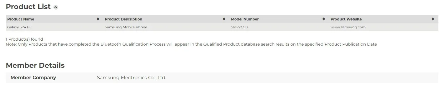 La variante américaine du Samsung Galaxy S24 FE vient de faire son apparition sur le site de certification Bluetooth SIG. Bien que la liste ne révèle que peu de détails — à savoir le nom Galaxy S24 FE et le numéro de modèle SM-S721U — cette apparition est un signe positif suggérant que le lancement est imminent, probablement dans les prochains mois.