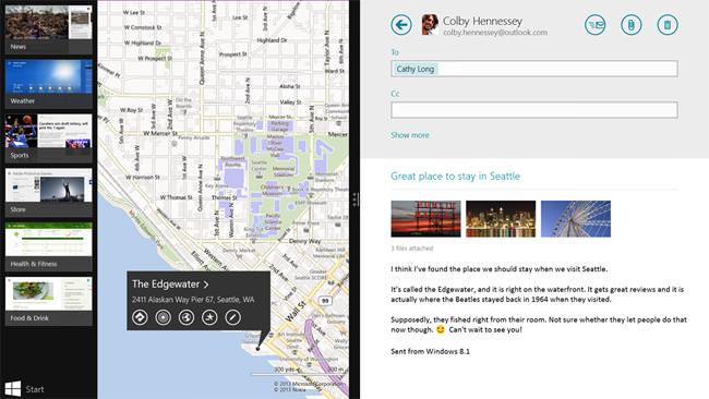 Une des meilleures fonctionnalités de Windows 8 est sa capacité à ouvrir plusieurs applications en même temps (également connues sous le nom de “mode Snap”). Malheureusement, il a tendance à diviser l’écran en incréments de 25%, ce qui signifie que Windows ne peut pas être inférieur à un quart de l’écran et pas plus de 75% en mode Snap. Microsoft promet une capacité d’accroche plus adaptative dans Windows 8.1, ce qui permettra de facilité l’ouverture de plusieurs fenêtres dans n’importe quelle taille. Vous serez même en mesure d’ouvrir deux fenêtres de la même application, comme lorsque vous voulez comparer deux pages Web côte à côte.