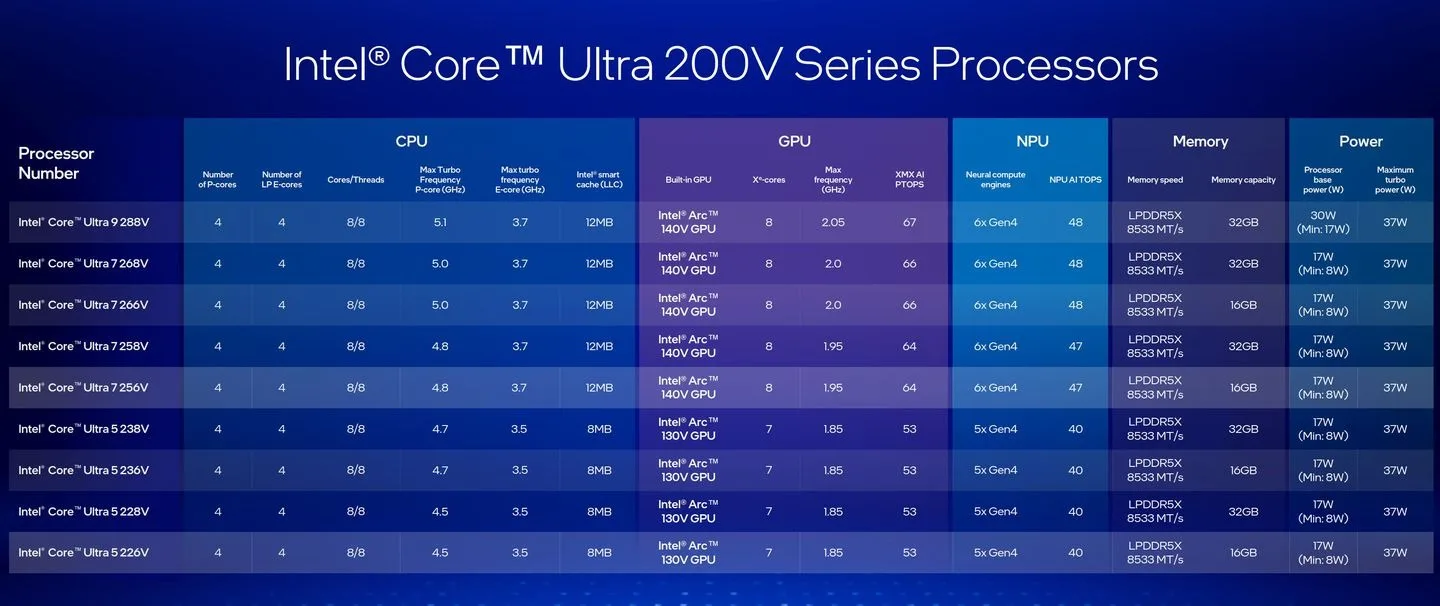 La série Core Ultra passe à la Series 2 alors qu’Intel a enfin lancé ses processeurs mobiles Lunar Lake de nouvelle génération. Ces nouvelles puces sont censées offrir des performances améliorées associées à une réduction substantielle de la consommation d’énergie par rapport à Meteor Lake. En fait, la nouvelle série Core Ultra 200V est désormais considérée comme la famille de processeurs x86 la plus efficace de tous les temps.