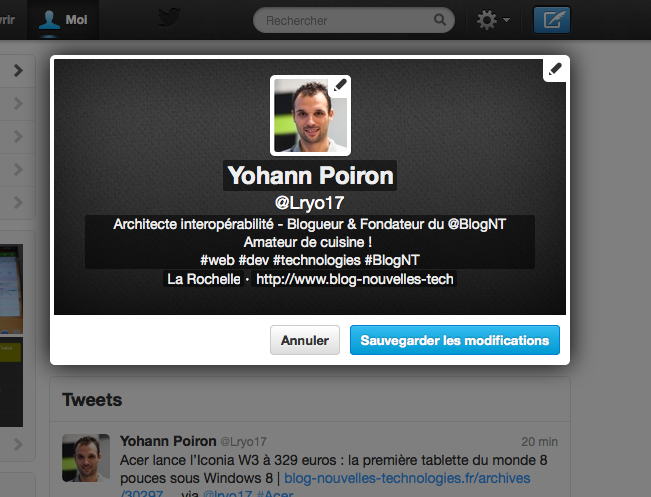 Twitter a publié une mise à jour mineure mais qui va s’avérer être la bienvenue pour ceux qui mettent à jour régulièrement leur profil, et plus précisément fréquemment leur photo de profil. En effet, comme TheNextWeb le fait remarquer, l’ingénieur Patrick Ewing Twitter a tweeté un “scoop” révélant que Twitter prend désormais en charge l’édition de profil en ligne ainsi que le glisser/déposer pour le téléversement d’une photo de profil.