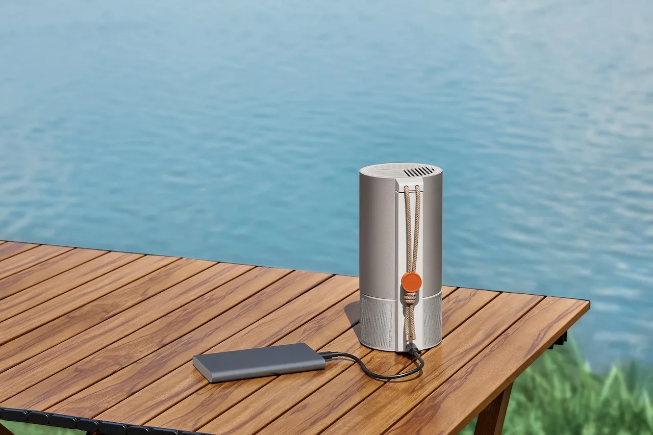 Le design du MoGo 3 Pro est étrange mais innovant. Lorsqu’il se présente sous la forme d’un thermos, le MoGo 3 Pro est extrêmement portable et l’élément de son objectif est protégé, ce qui lui permet de trouver sa place dans un sac à dos ou un sac à main. Lorsqu’il est déplié, le projecteur est clairement un projecteur : il dispose d’un objectif inclinable, de haut-parleurs intégrés et d’un logiciel Google TV intégré. Et bien qu’il n’y ait pas de batterie intégrée, vous pouvez faire fonctionner le projecteur à partir d’une batterie externe USB via un câble USB-C.