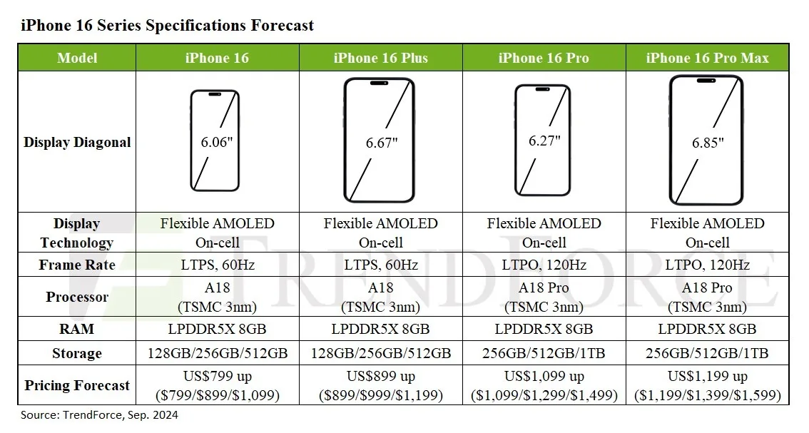 Cette année, le géant à la pomme croquée devrait proposer un stockage de base de 256 Go sur l’iPhone 16 Pro, supprimant ainsi l’option 128 Go sur les modèles Pro, selon un nouveau rapport de TrendForce.