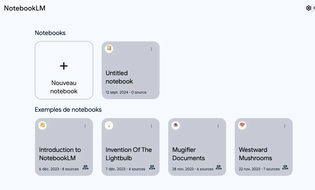 - Vous n’avez pas besoin d’un abonnement Gemini Advanced pour accéder à NotebookLM. Cliquez ensuite sur « Nouveau notebook ».