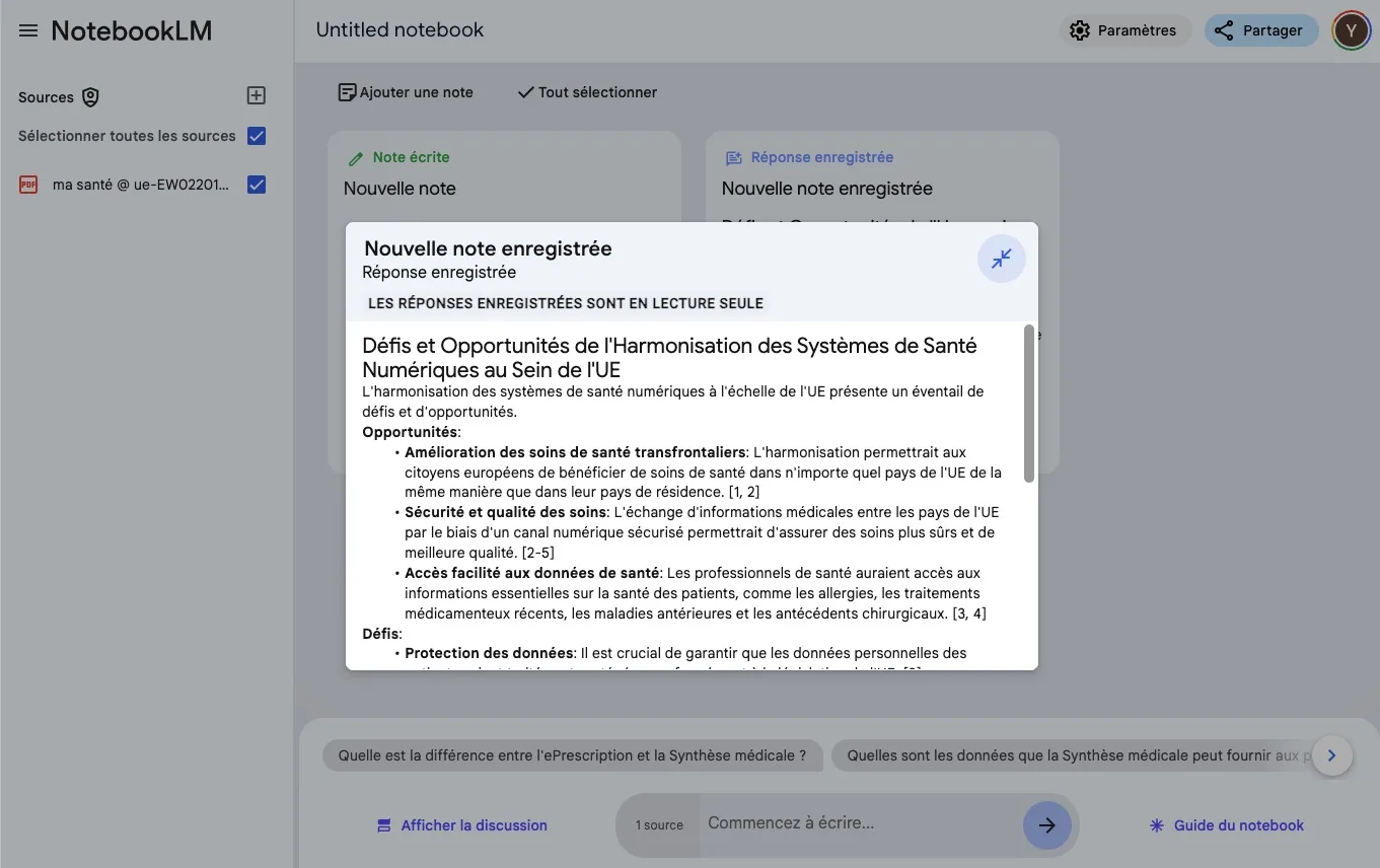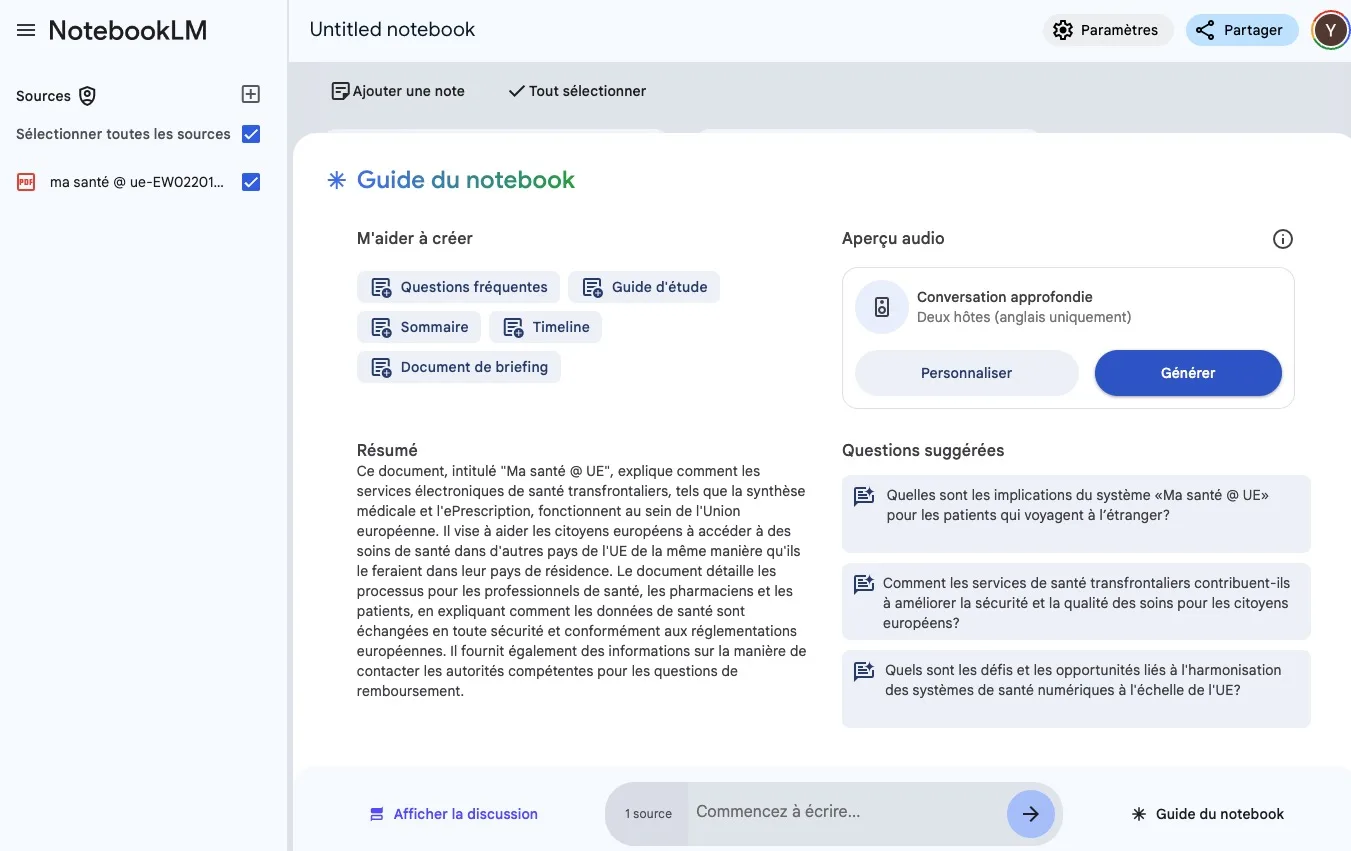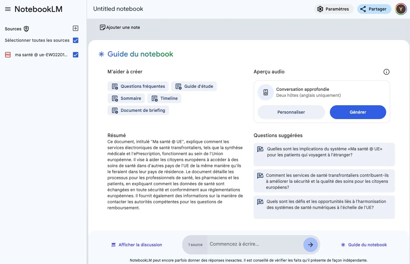 - NotebookLM va maintenant analyser vos documents et vous fournir un résumé.