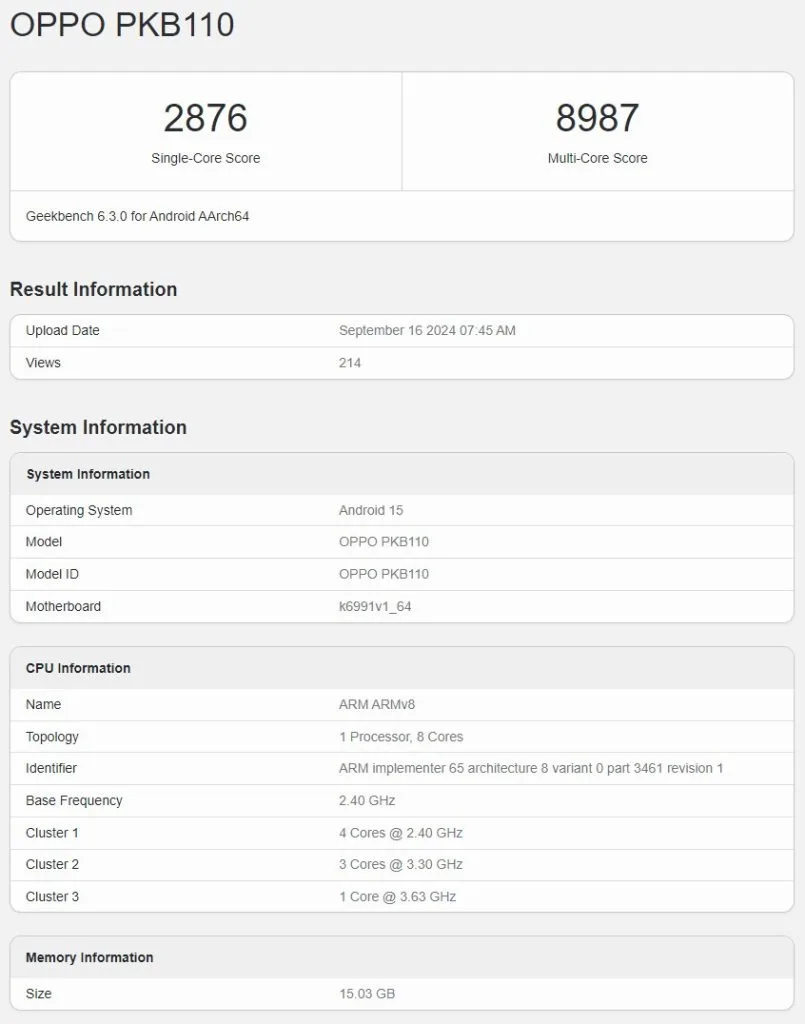 Le listing Geekbench dévoile également 16 Go de RAM et Android 15 pour le smartphone. Comparé au vivo X200, dont les scores étaient de 1 531 points en monocoeur et 6 168 points en multicoeurs, le Find X8 affiche de meilleures performances.