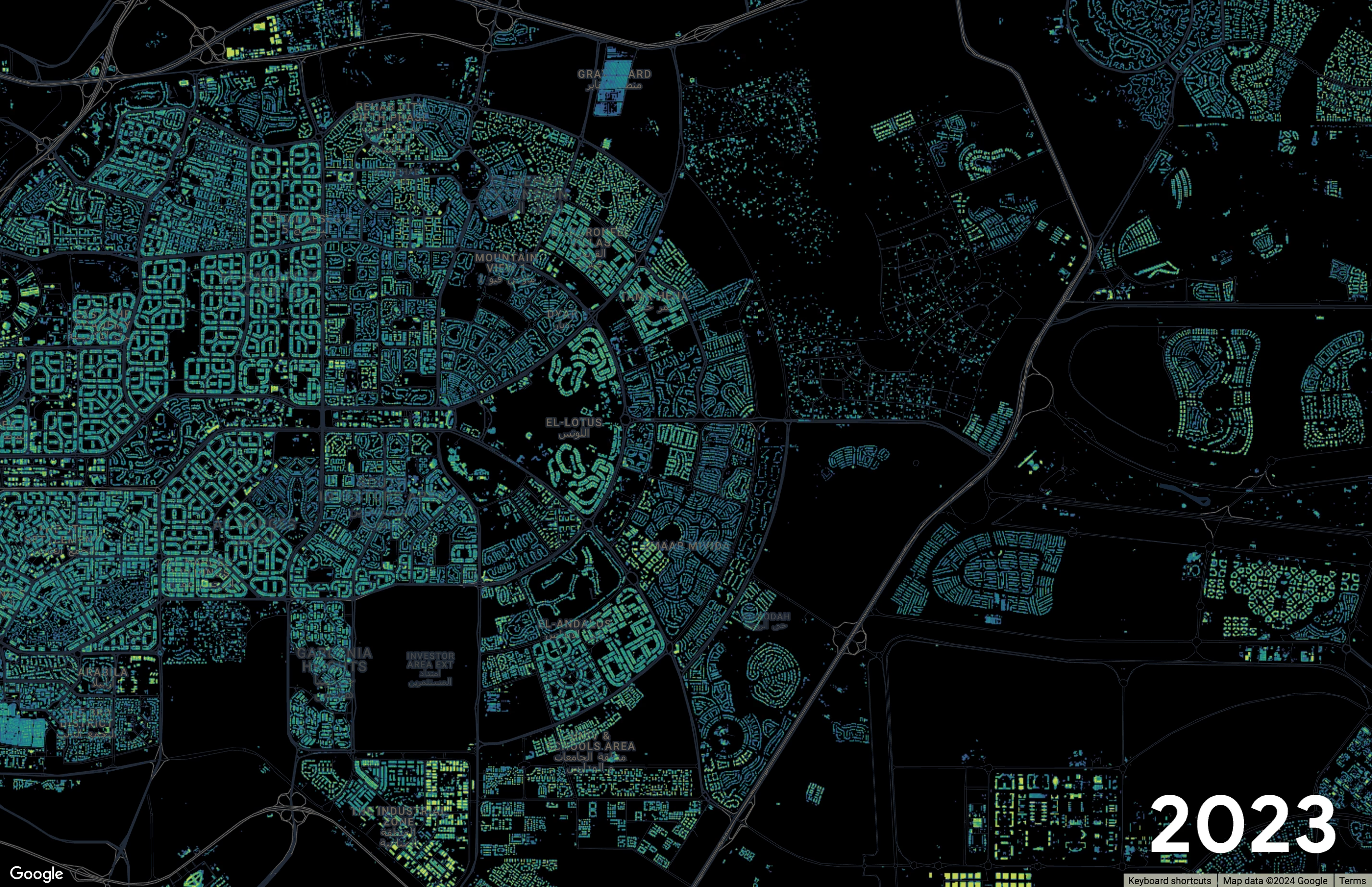 Cet ensemble de données couvre une zone de 32 millions de kilomètres carrés en Afrique, en Amérique latine, en Asie du Sud et du Sud-Est. Le suivi des changements comprend des estimations de la présence, du nombre et de la hauteur des bâtiments, et porte sur les années 2016 à 2023.