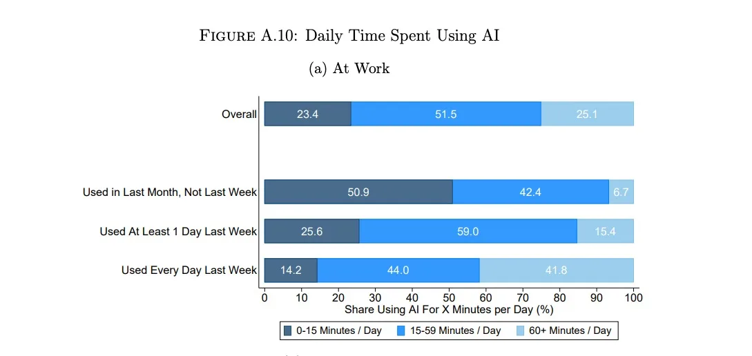 Les chercheurs notent que « les taux d’utilisation au travail dépassent 25 % pour les dix tâches de notre liste », soulignant à quel point l’IA générative est devenue utile dans toutes les fonctions professionnelles. Qu’il s’agisse de résumer des rapports ou de générer de nouvelles idées, l’IA permet déjà aux employés de gagner un temps considérable.