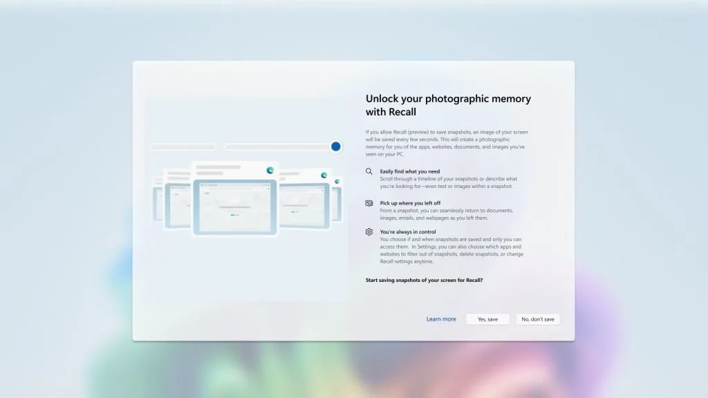 Une version préliminaire de Recall devrait être déployée auprès des membres du programme Windows Insiders en octobre, avant que Recall ne soit mis à la disposition du grand public dans un avenir proche.