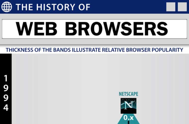 En regardant la course des navigateurs actuels, il est difficile de se rappeler de l’époque où Netscape avait plus de 86% de la part de marché. Une fois que Microsoft a commencé à intégrer Internet Explorer dans Windows, la société a sans surprise dominé le marché pendant plusieurs années. Au mois d’août dernier je vous présentais une infographie sur les navigateurs d’hier à aujourd’hui. Celle-ci nous présentait la naissance des plus grands navigateurs.