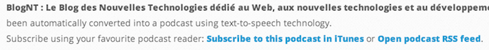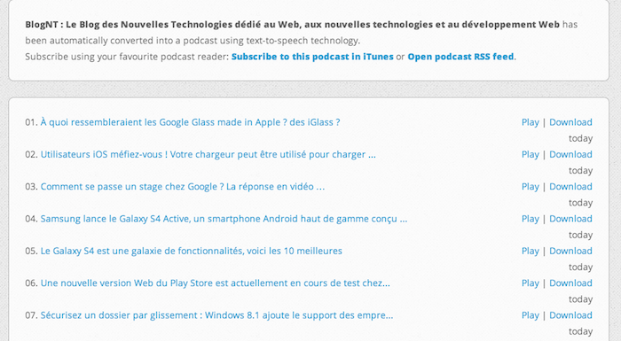 Au cours de mes tests, j’ai essayé de convertir différents blogs en podcasts et le résultat a toujours été à la hauteur de mes attentes. Toutefois, ne vous attendez pas à une vraie voix humaine pour le podcast. En fait, vous aurez à supporter la voix monotone de l’ordinateur…
