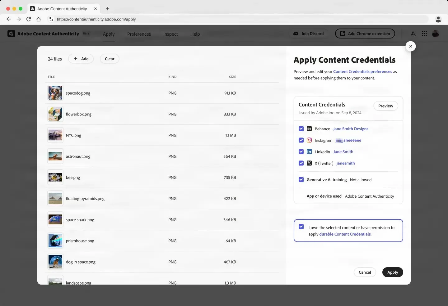 Surtout, elle permettra d’appliquer des Content Credentials à tout type de fichier image, vidéo et audio, et pas seulement aux contenus créés avec les applications Adobe.