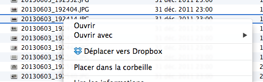 Enfin, la troisième caractéristique de la bêta est un “Déplacer vers Dropbox” dans le menu contextuel qui apparaîtra “pour la plupart des fichiers ou dossiers en dehors de votre Dropbox”. Il permet essentiellement aux utilisateurs de faire un clic droit sur un fichier ou un dossier et l’envoyer à votre dossier principal Dropbox, mais sans le partager automatiquement.